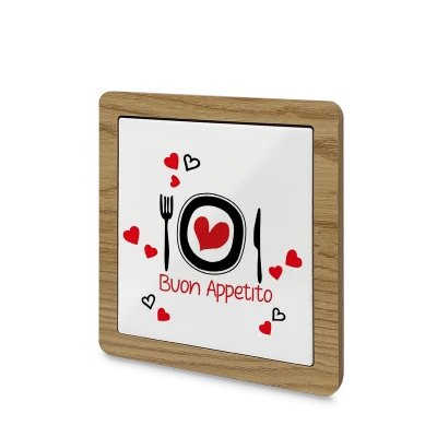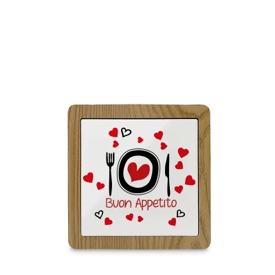 Sottopentole in ceramica bianca ultrabrillante con involucro in legno