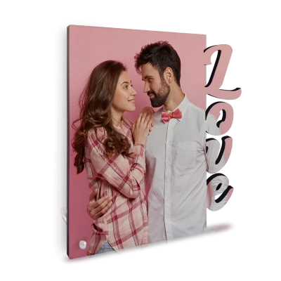 Cornici fotografiche laterali con scritte sagomate: Xmas, Love, Mamma e Papà.