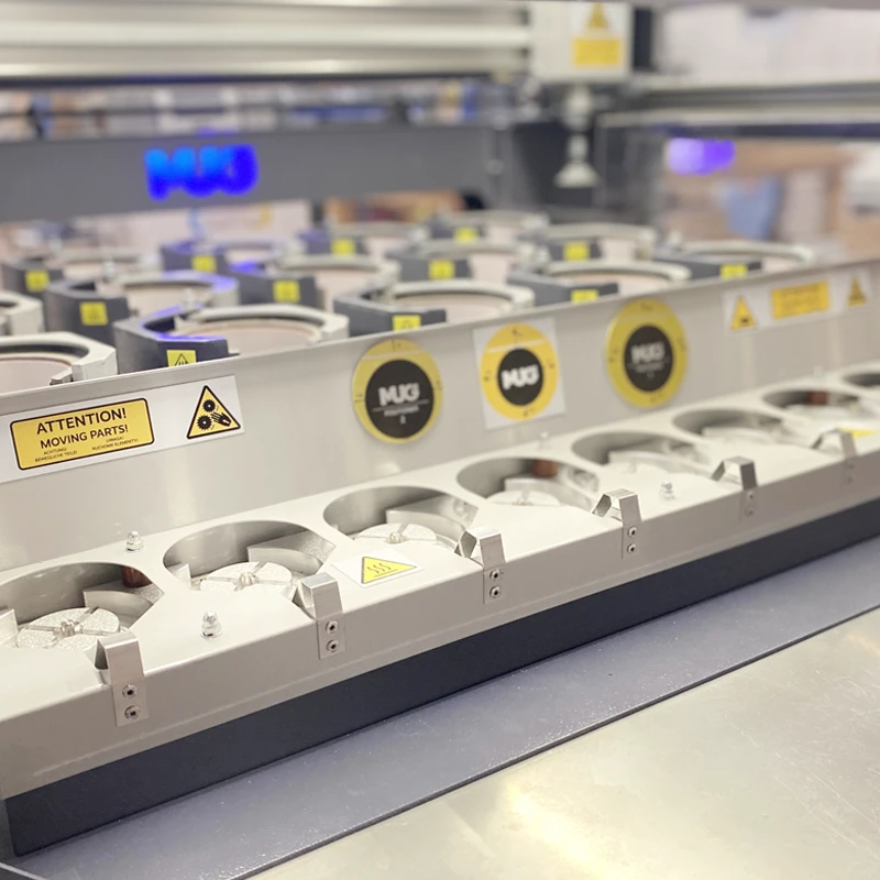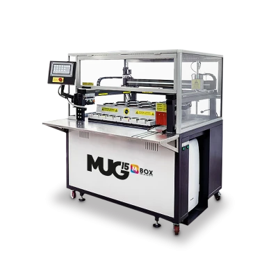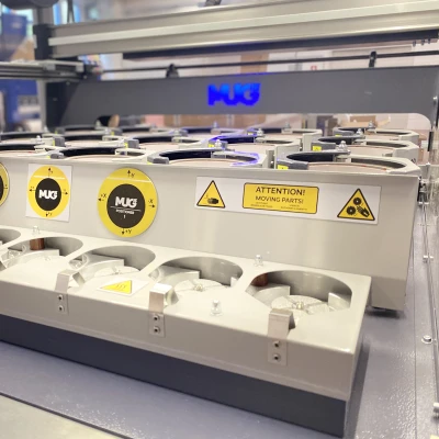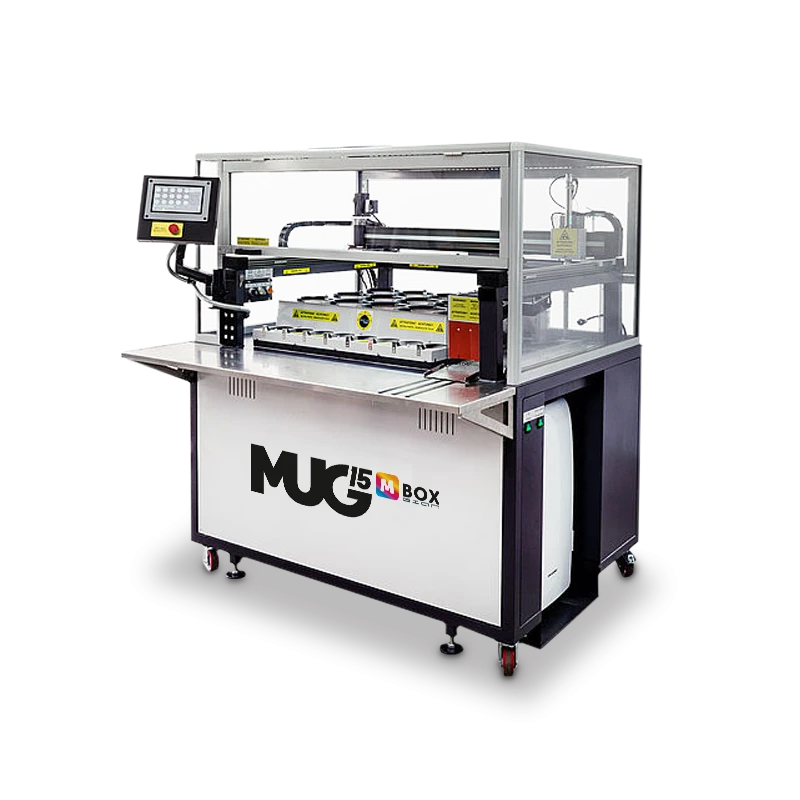 MUG15 è il NUOVISSIMO sistema completamente automatizzato ideale per la produzione di tazze per grandi tirature: personalizza fino a 257 tazze per ora.