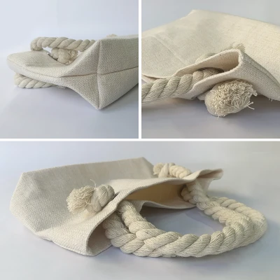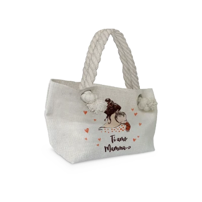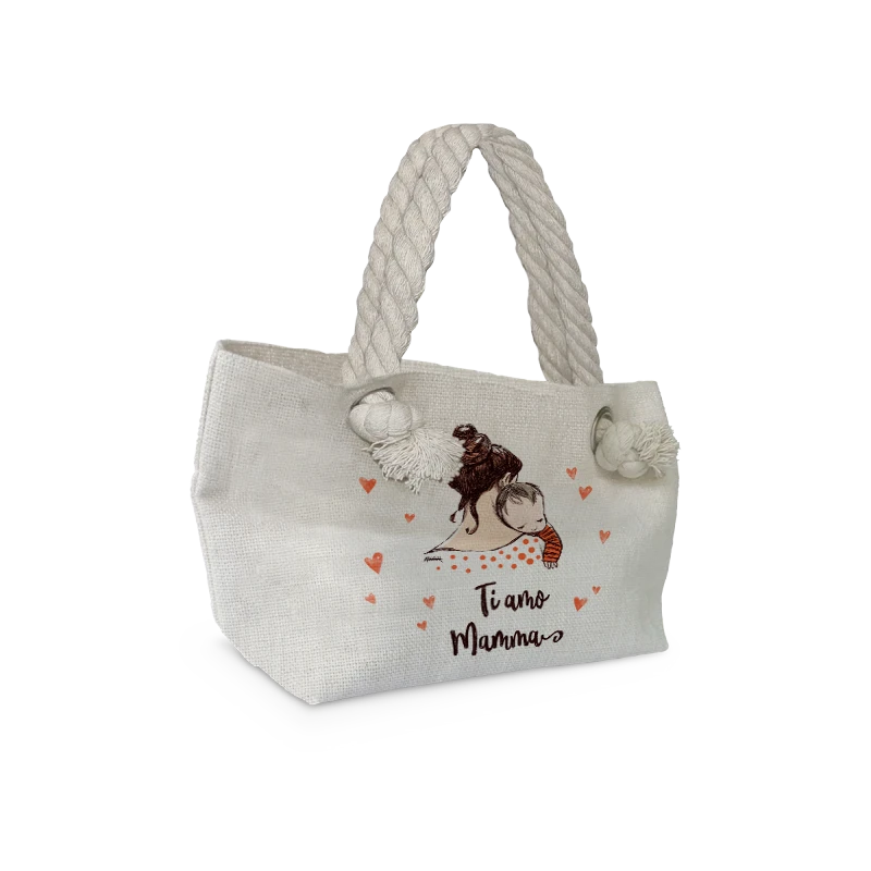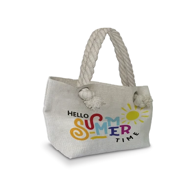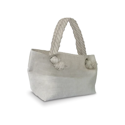 Graziosa borsa a mano da donna e shopper da donna 29x16,5 cm con occhielli e manici in corda alla marinara in modernissimo tessuto juta.