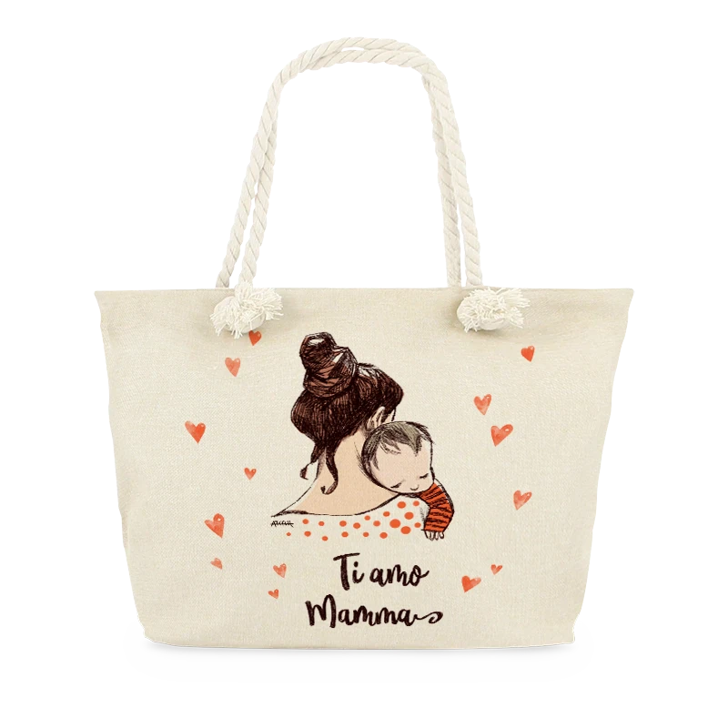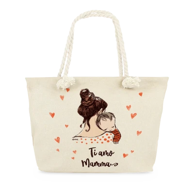 Borsa mare in juta 47x30 cm (senza manici) interamente stampaible con occhielli rinforzati e manico in corda alla marinara.