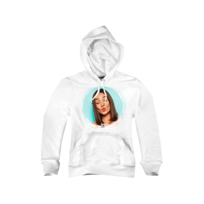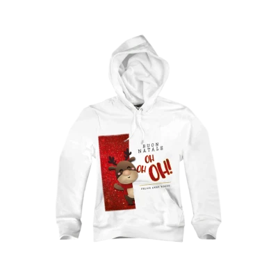 Felpa bianca per Bimbo-Bimba realizzata in caldo tessuto poliestere dalla linea moderna con cappuccio e tasconi.