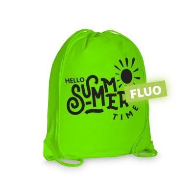 Graziose sacche unisex con chiusura corda colorata in tinta, realizzate in leggero e resistente tessuto poliestere e angoli rinforzati.