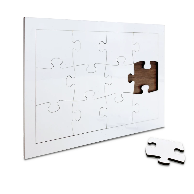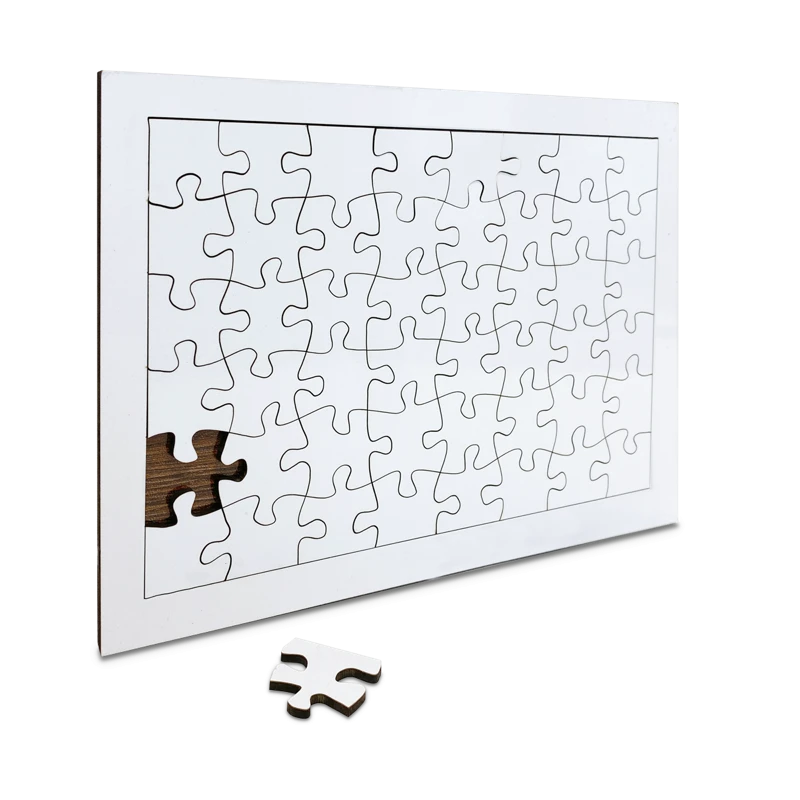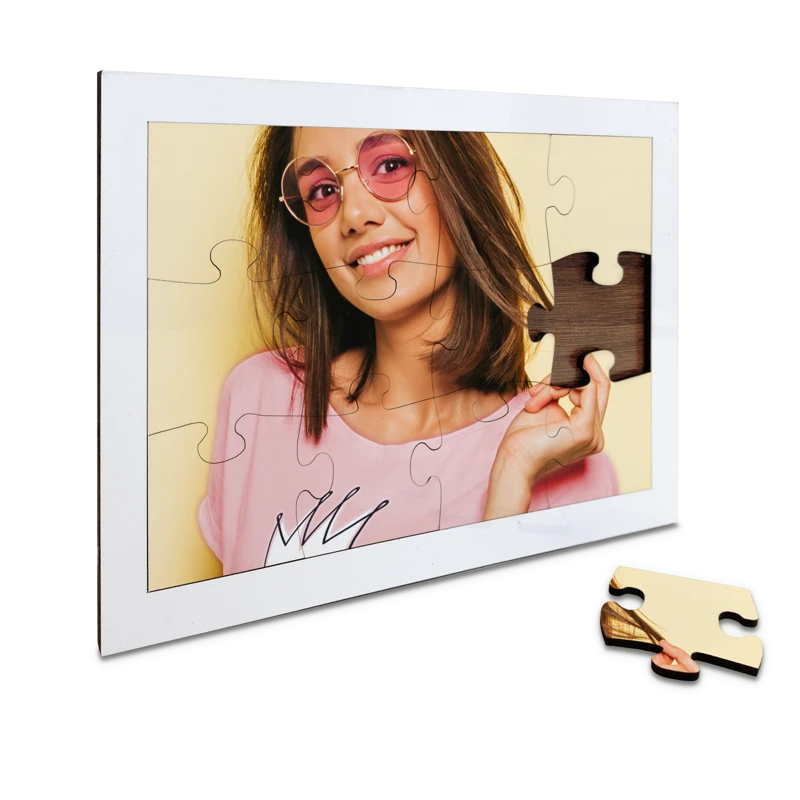 Puzzle in legno rettangolare 20x30 cm dal tassello piccolo o grande con cornice lungo i bordi.
