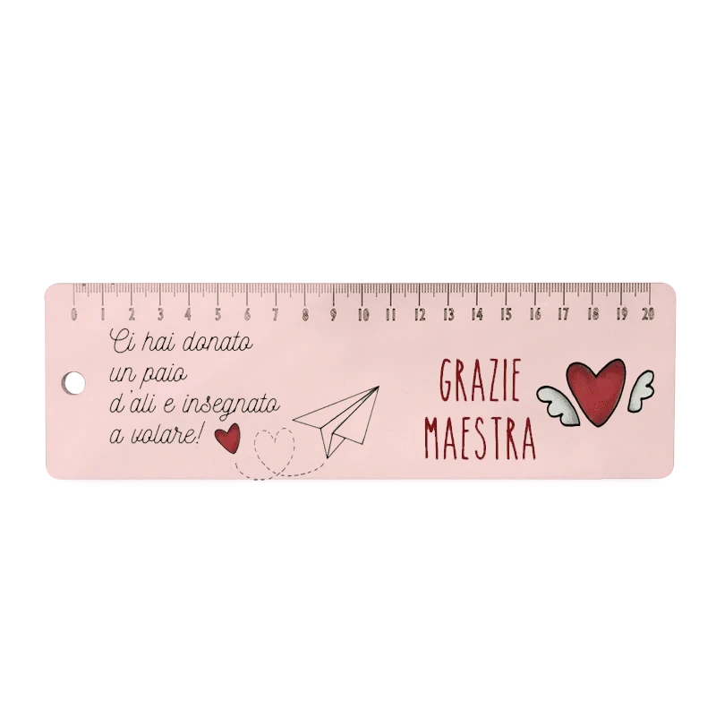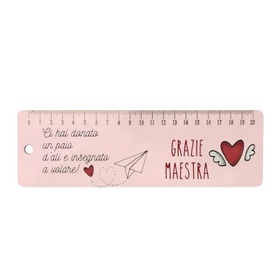 Righello scuola in legno MDF 20x8 cm con indicazione dei centimentri.