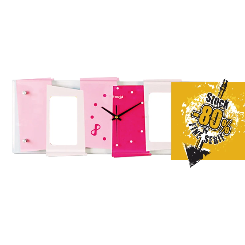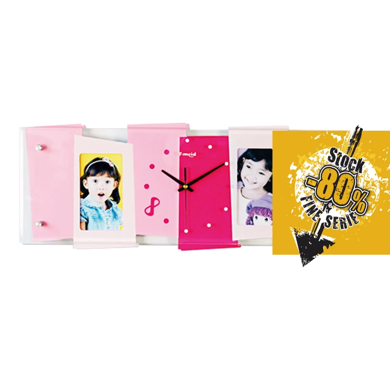 Orologio portafoto in legno MDF e Vetro colore rosa per bambine.